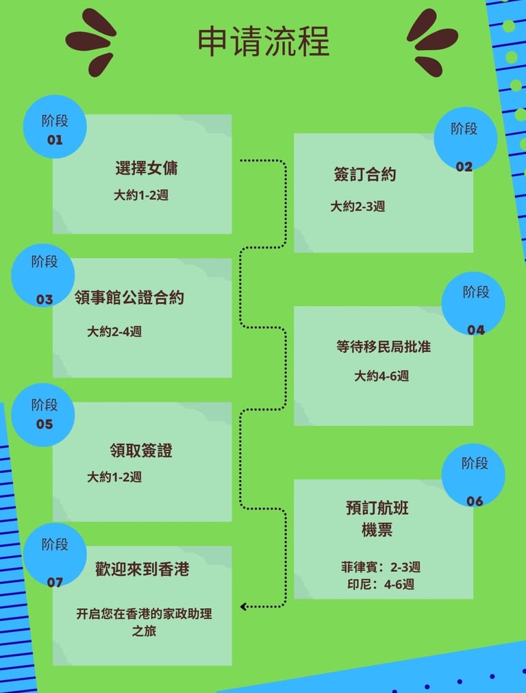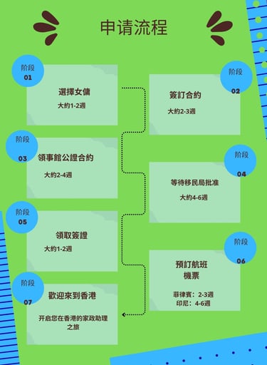 選擇女傭- 挑選女傭需要1到幾週的時間,以確保雇主的需求和中介機構能 提供的女傭品質相匹配